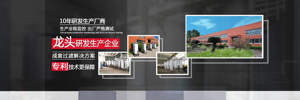 成都愛爾純凈化設(shè)備有限公司,坐落于美麗的天府之國,成都市溫江區(qū)海峽科技園工業(yè)區(qū),專業(yè)從事于過濾、凈化技術(shù)的研發(fā)應(yīng)用,產(chǎn)品有保健酒過濾設(shè)備、白酒過濾設(shè)備、白酒凈化設(shè)備、水凈化設(shè)備等,公司引進(jìn)世界先進(jìn)過濾分子技術(shù),結(jié)合專業(yè)技術(shù)人員資深多年實(shí)踐經(jīng)驗(yàn),解決酒類、飲水類后期處理難題。 業(yè)務(wù)涵蓋,酒類過濾:除混濁沉淀,澄清處理、除苦味,異雜味,新酒催熟陳化處理 、除塑化劑、固形物、雜醇油、甲醇及各類含量超標(biāo)后期處理。 水類:軟水、純凈水、礦泉水、飲料等凈化處理。用心為客戶提高生產(chǎn)效率、提高產(chǎn)品質(zhì)量、降低生產(chǎn)成本、環(huán)保減排而開發(fā)創(chuàng)新,堅(jiān)持奮斗。 公司至誠每一位客戶,“誠信服務(wù),客戶至上”為宗旨,為客戶要求,用心凈化每一點(diǎn)滴,我們都將以精準(zhǔn)的數(shù)據(jù)化設(shè)計(jì)、嚴(yán)格的設(shè)備制作質(zhì)量把關(guān)、快捷專業(yè)的安裝調(diào)試以及周到的售后服務(wù),解決客戶生產(chǎn)過程中遇見的各種酒、水后期處理的技術(shù)難題。